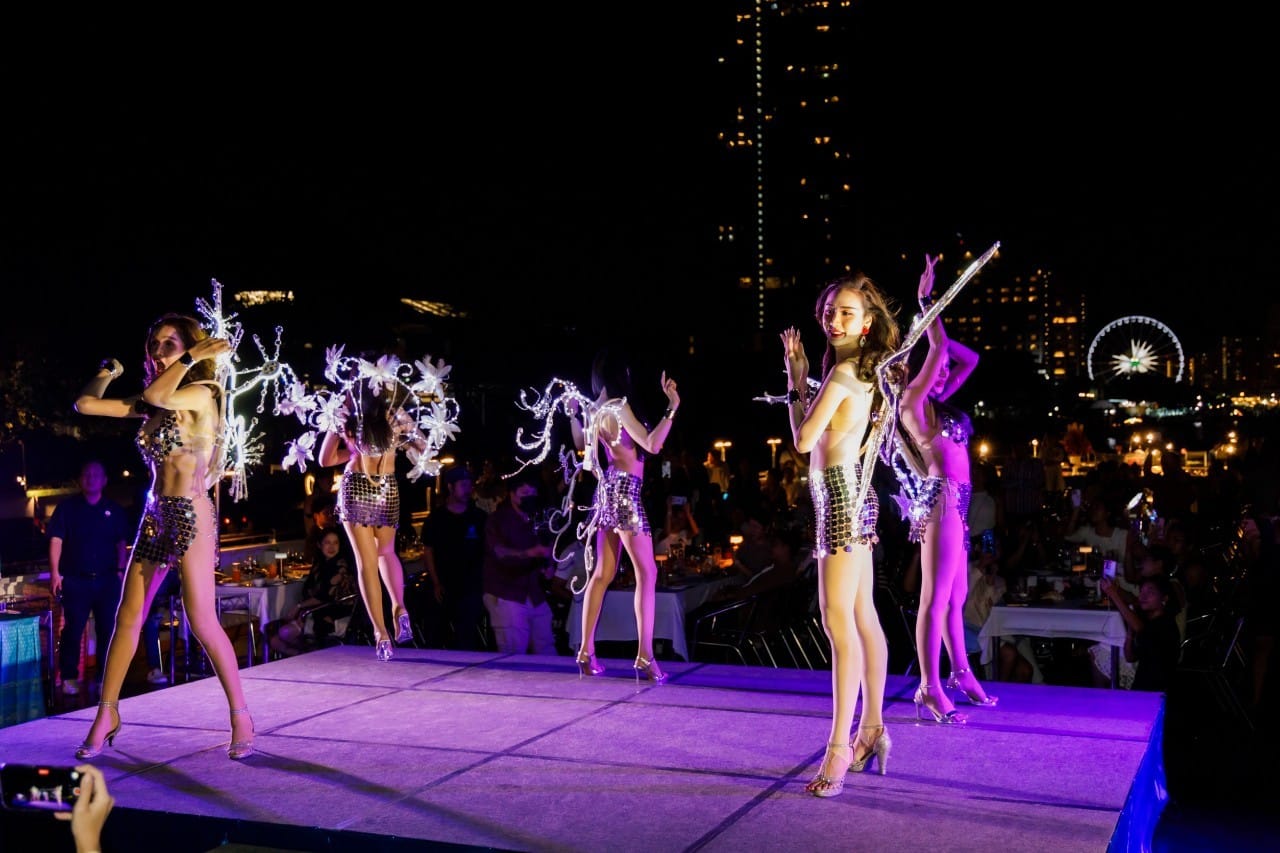 The cruise ship is spacious with two decks, which can accommodate approximately 800-850 passengers. With a 2-hour cruise, you can enjoy not only a hearty Thai and international sea buffet dinner, but also live DJ music, live singer singing, a fiery male show and a gorgeous fairy dance show! There is also an audience interaction and photo bridge section. Hi, tour the whole site and surprise!
