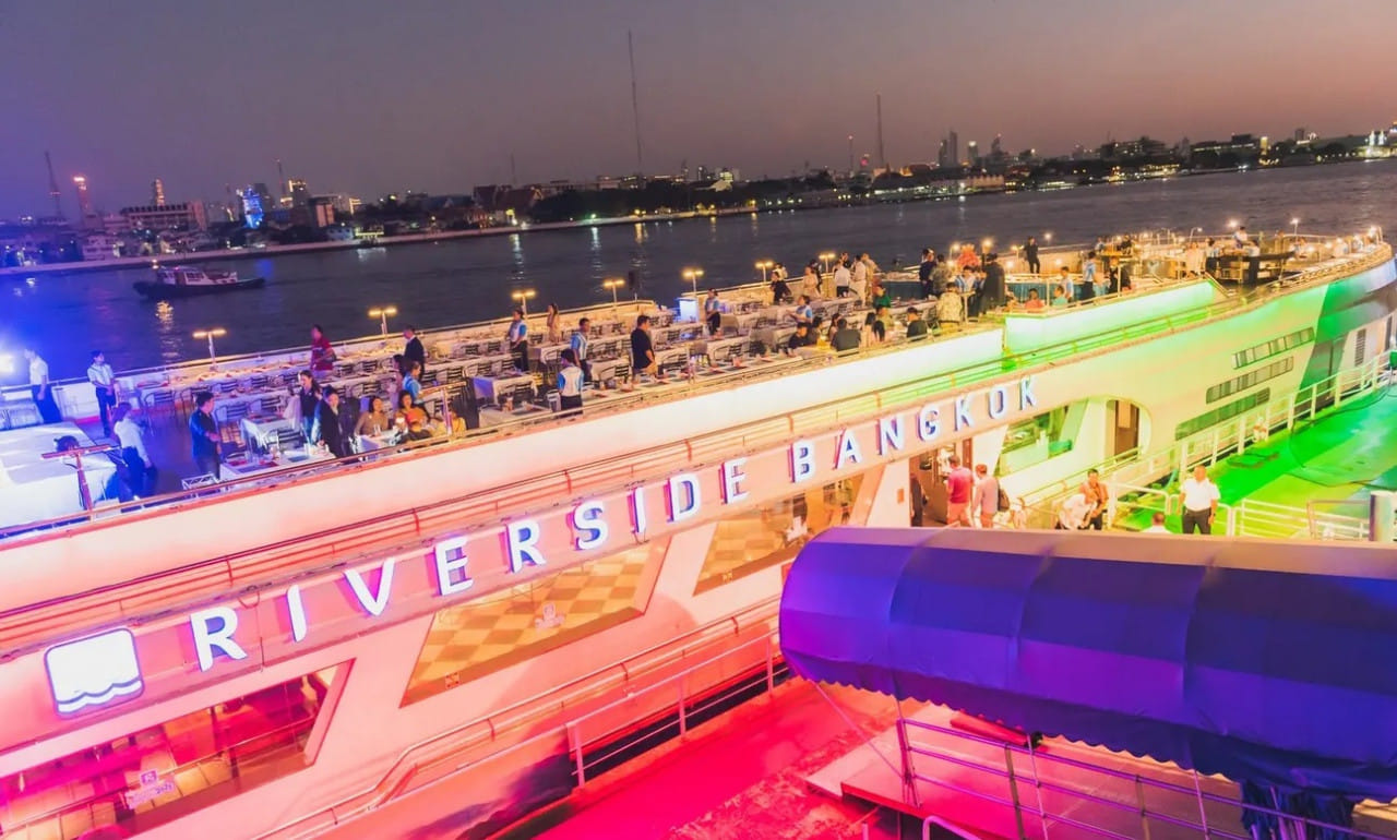 Embark on a luxurious double-decker Riverside Carnival Cruise on the shores of the Mae Nam River for a night carnival special in Bangkok! This is one of the classic experiences that cannot be missed when traveling to Thailand, invite you to embark on a boat and embark on Bangkok's most enchanting water night tour.