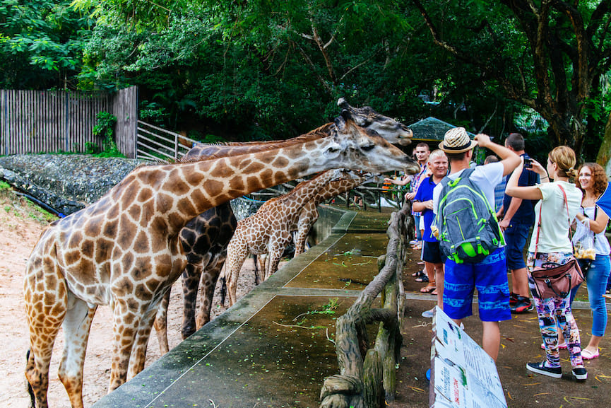 Here, you can explore the African Savannah, where zebras, rhinos, and giraffes roam freely, or visit the big cat zone to see majestic lions and tigers. Wander through the vibrant aviary, stroll across the one-acre deer park, hand-feed animals, watch the charming penguin parade, and even ride an elephant! For a more comfortable experience, golf carts are available for rent, allowing you to explore the zoo effortlessly.